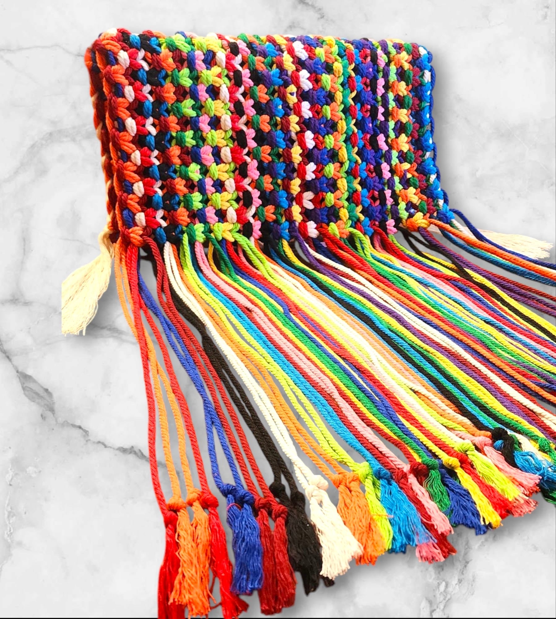 Este bolso es una verdadera obra de arte, tejido en punto macramé con una técnica ancestral que requiere habilidad y dedicación .